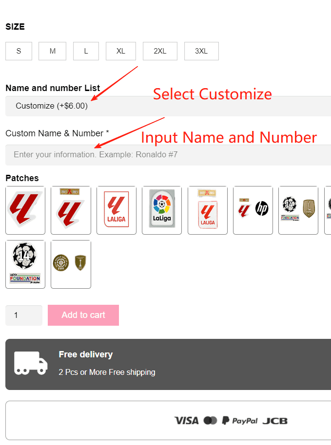 -You need to leave your custom information about the name and the number in the Special Instruction(optional) when you are adding payment informations. So that we can customize them for you before we ship the order. If not, we will send the shirt without the name and the number to you. Thanks!