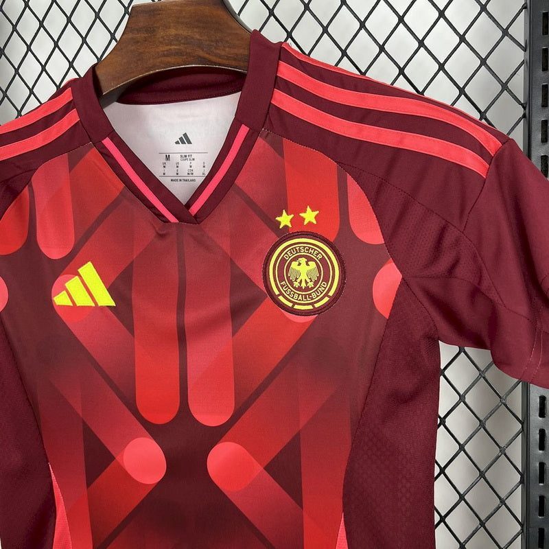 The Germany football jersey for the 2024/25 season boasts a bold, modern design that mixes classic German elements with a contemporary twist. The iconic black, red, and gold colors are featured prominently, representing the national team’s legacy and rich history in world football. The jersey’s design is sleek and clean, with the Germany Football Federation (DFB) crest embroidered on the chest, ensuring an authentic, official look. This jersey perfectly balances heritage with modern aesthetics, making it ideal for wear on and off the field.